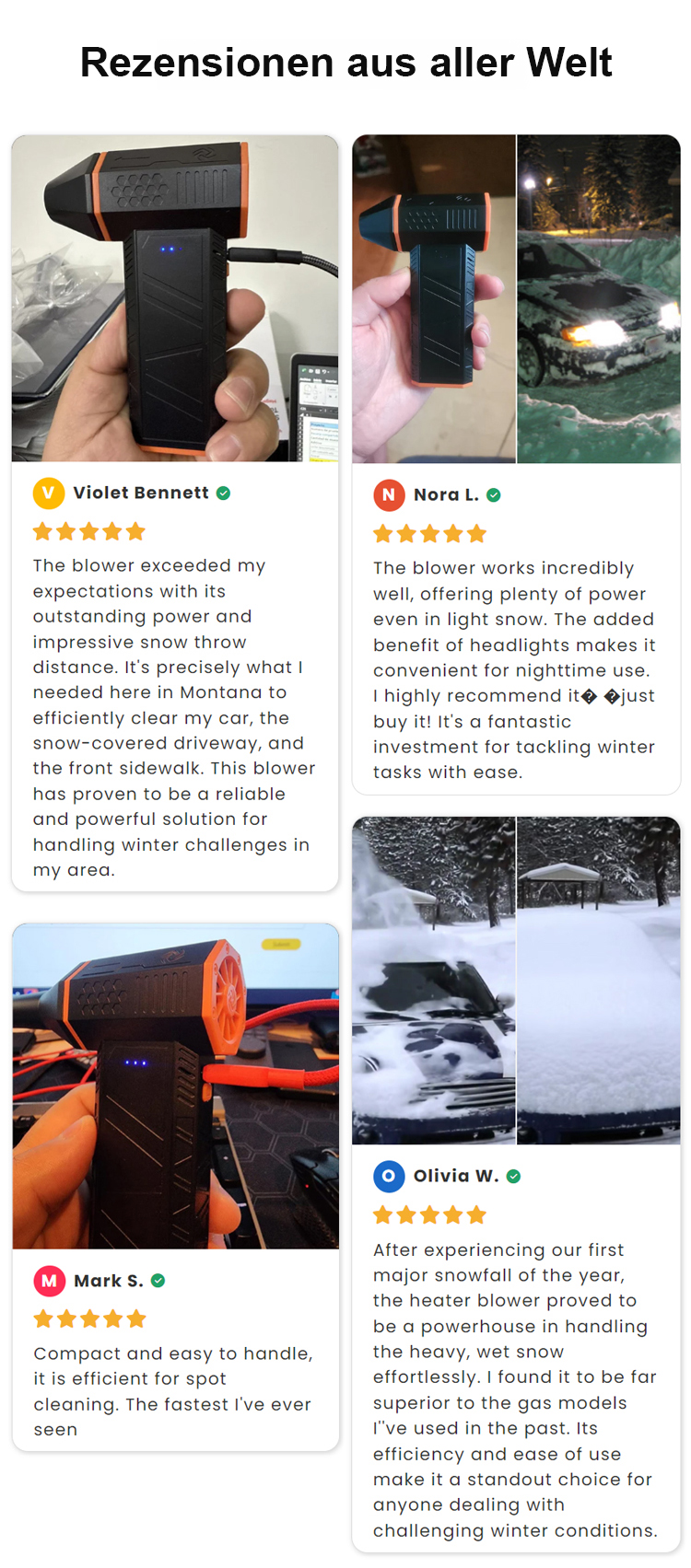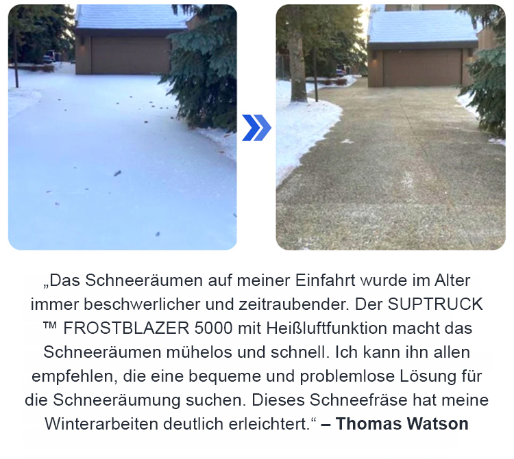 Entspricht den deutschen DIN-Normen für Industriegeräte und ist mit einem leistungsstarken 20.000-mAh-Lithium-Akku ausgestattet, der bis zu 8 Stunden Dauerbetrieb mit einer einzigen Ladung ermöglicht. Bestellen Sie noch heute und sichern Sie sich 50 % Rabatt. Sollten Sie während der 14-tägigen Testphase mit der Schneeräumleistung oder der Benutzerfreundlichkeit nicht zufrieden sein, können Sie uns jederzeit kontaktieren und eine problemlose Rückgabe beantragen.
